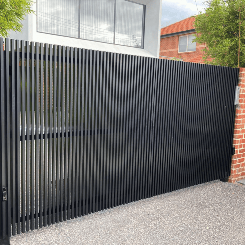 Choose from a wide range of slat profiles, batten options, frame designs and powder-coated or timber-look finishes. Every gate is tailored to suit your architectural style, offering a cohesive, high-end entry solution that complements the surrounding façade and fencing.